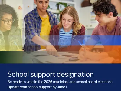 To ensure your correct school support designation is provided to Elections Ontario in time for the next municipal and school board elections on October 26, 2026, it should be reviewed and, if needed, updated by June 1, 2026.